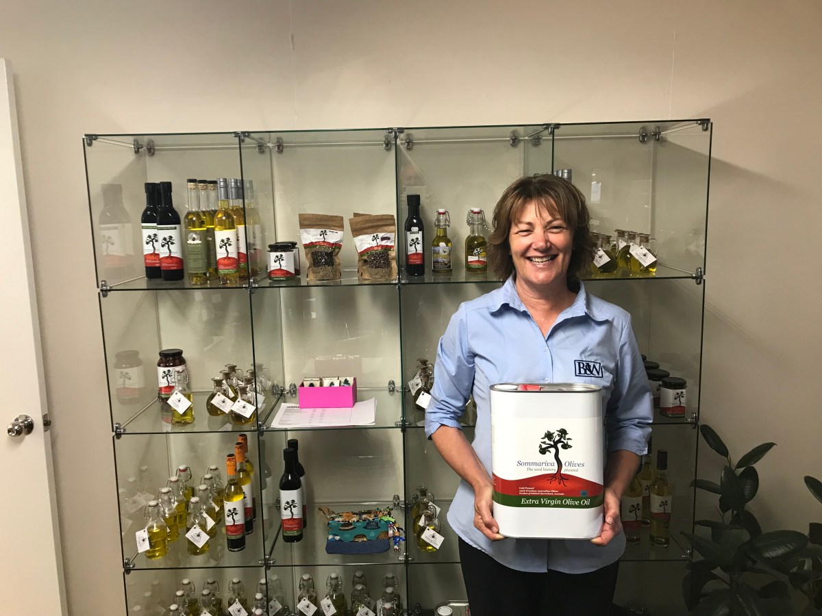Karen McLennan displaying Sommariva products Published October 24, 2018 at 4032 × 3024 Karen McLennan with an array of outback products produce in Charleville by Sommariva